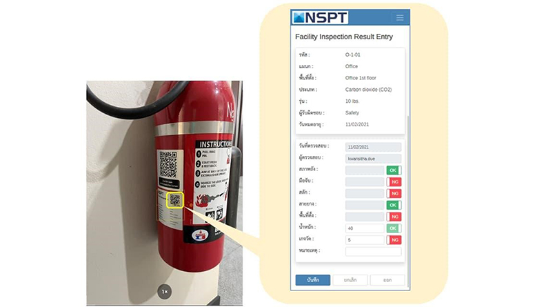 นอกจากอุปกรณ์เครื่องจักรและผลิตภัณฑ์แล้ว ยังมีอุปกรณ์เครื่องวัดที่ต้องทำหน้าที่ในการรับประกันคุณภาพของผลิตภัณฑ์และเครื่องจักรที่ต้องทำหน้าที่ด้านความปลอดภัยในไลน์การผลิตอีกด้วย ซึ่งอุปกรณ์เหล่านี้ต้องได้รับการบำรุงรักษาอย่างสม่ำเสมอ เช่น การตรวจสอบและเปลี่ยนใหม่ตามระยะเวลาทางกฎหมาย สำหรับบริษัท NSPT ก็เช่นกัน ภายในโรงงานมีเครื่องจักรและอุปกรณ์หลายร้อยเครื่องที่จำเป็นต้องได้รับการตรวจสอบตามกฎหมาย ซึ่งการตรวจสอบตามระยะเวลาที่กำหนดจะดำเนินการด้วยตนเองโดยผู้รับผิดชอบอุปกรณ์เครื่องจักรนั้นๆ และผลการตรวจสอบจะถูกเขียนด้วยลายมือในใบตรวจสอบสำหรับอุปกรณ์แต่ละชิ้น
